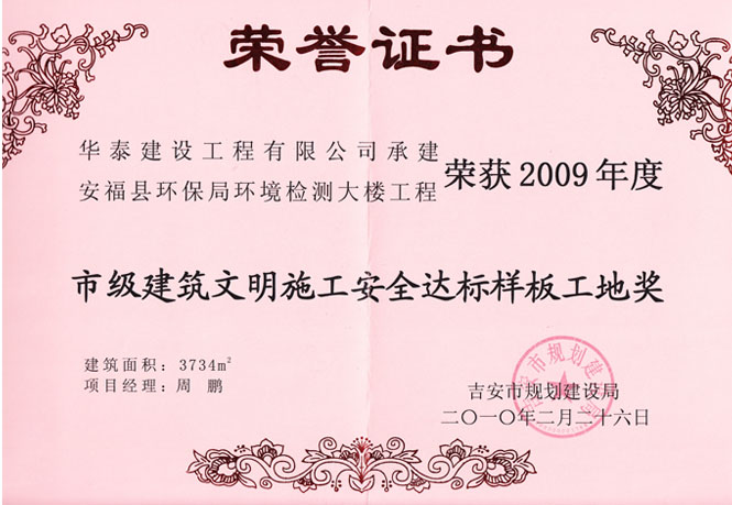 安福環保局環境檢測大樓榮獲2009年市建建筑文明工地獎