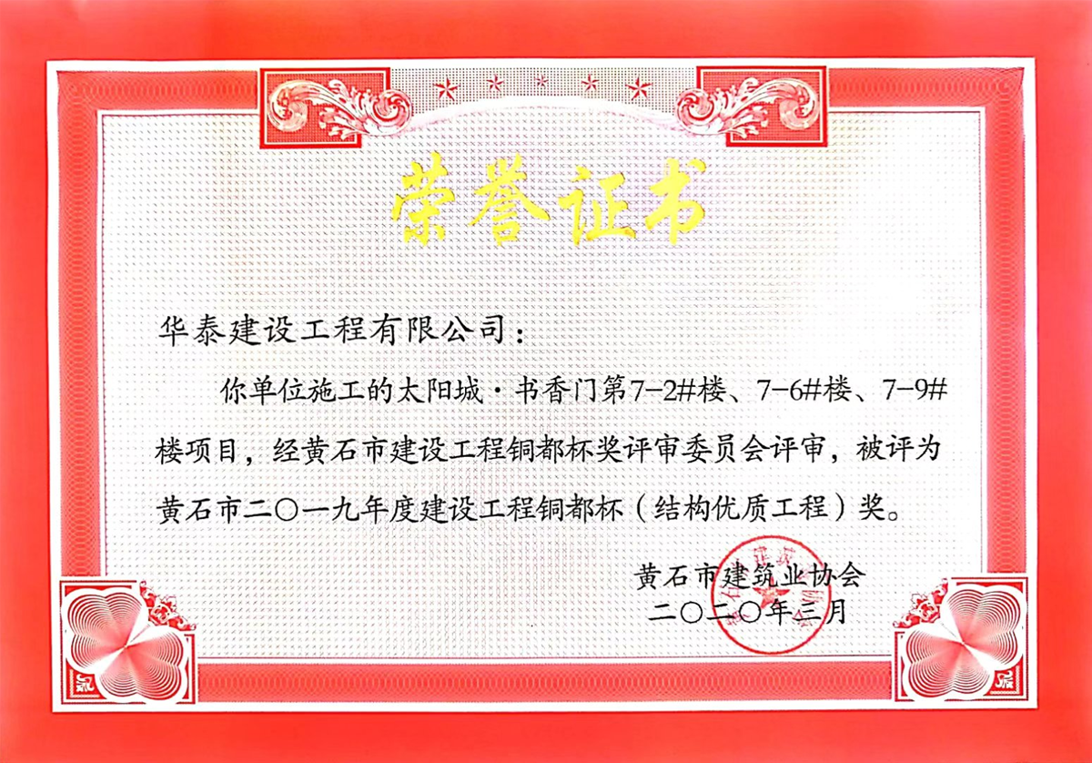 榮獲2019年度黃石市建設工程結構優質工程獎 ——太陽城·書香門第