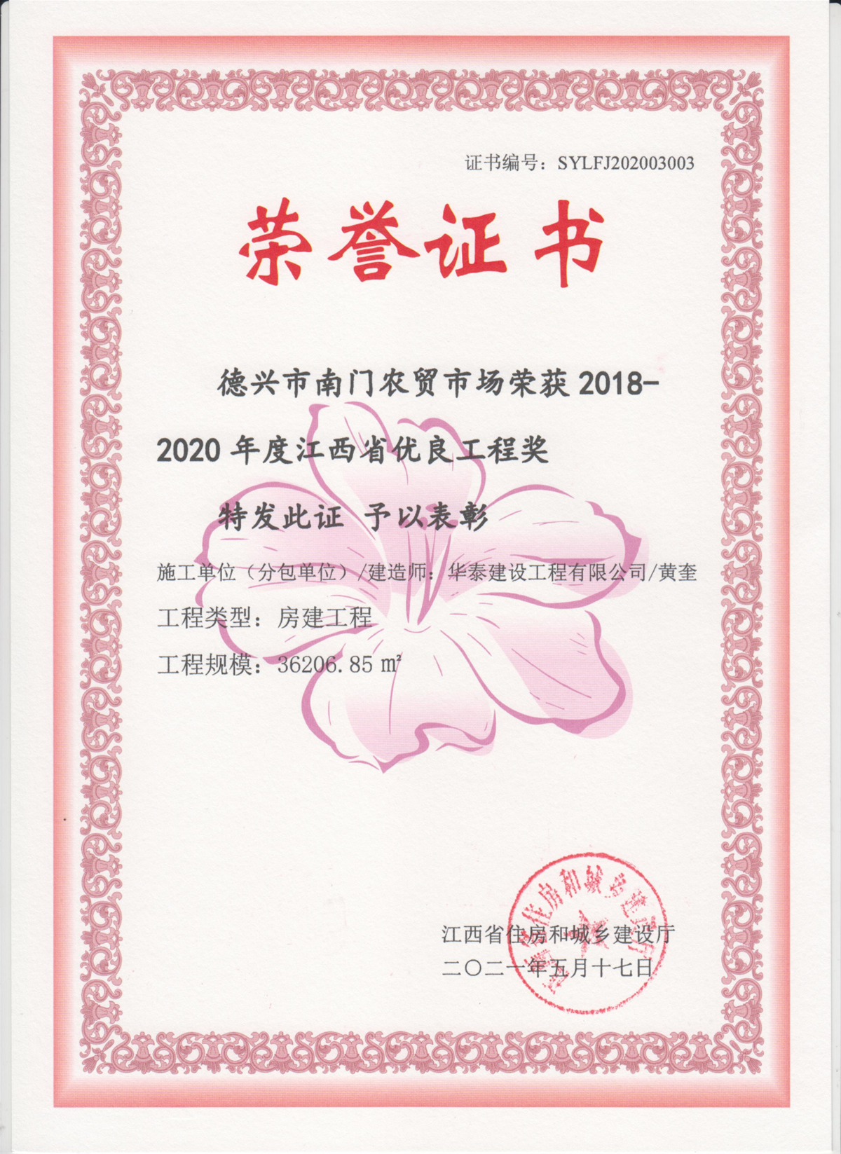 榮獲2018-2020年度江西省優(yōu)良工程獎 ——德興市南門農(nóng)貿(mào)市場